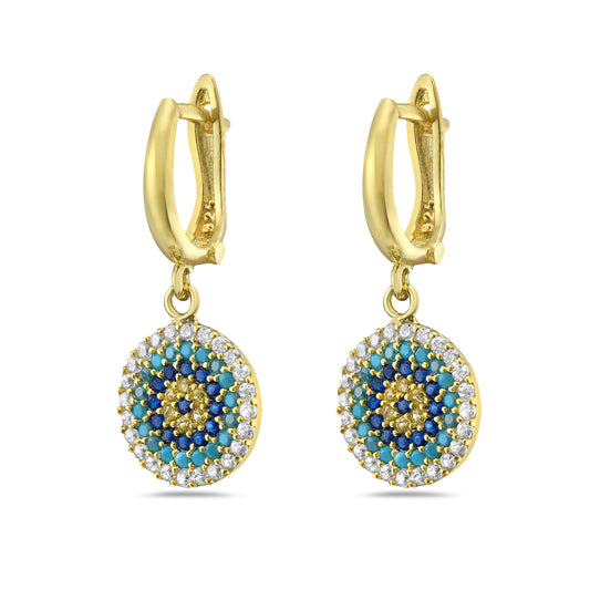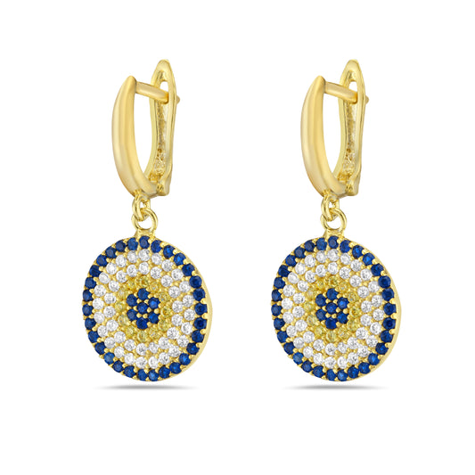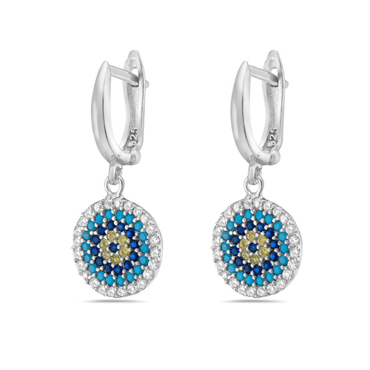 Beta Evil Eye Earrings in 14K White Gold Plated