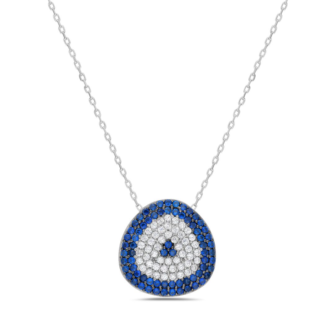 Embrace timeless elegance with our Evil Eye Necklace, crafted from sterling silver and adorned with sparkling cubic zirconia. Available in three exquisite finishes: white rhodium plated, yellow plated, and rose plated.