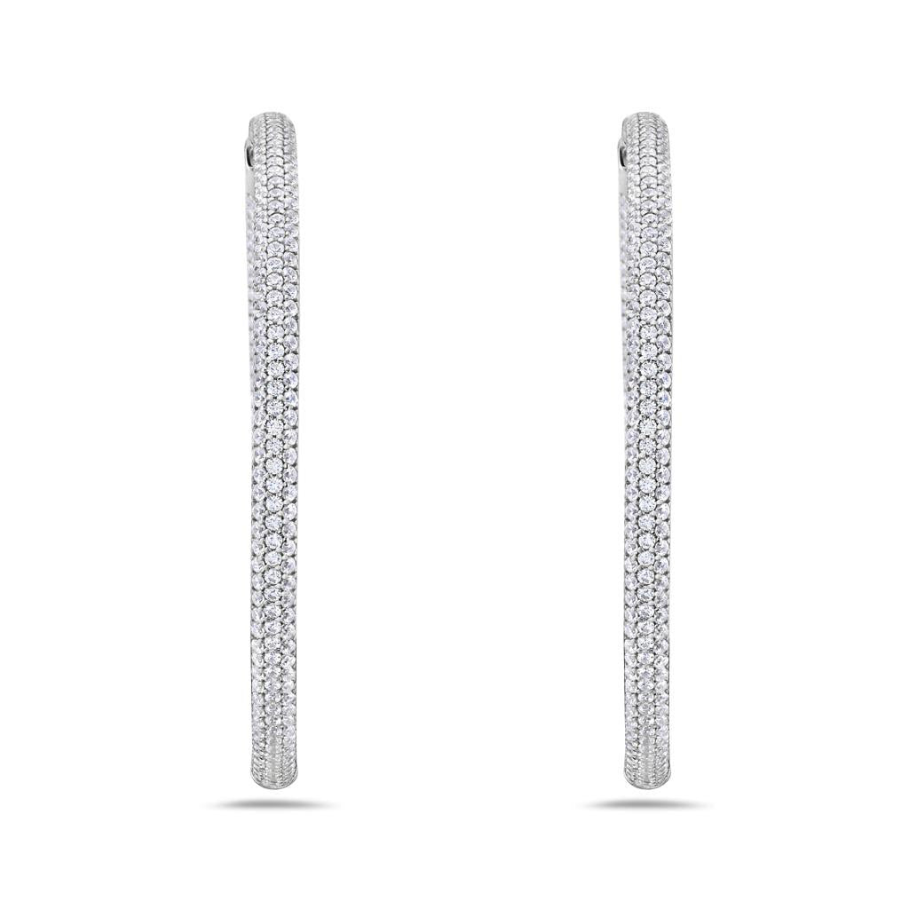 Sterling silver hoop earrings with pave set cubic zirconia Swarovski crystals.