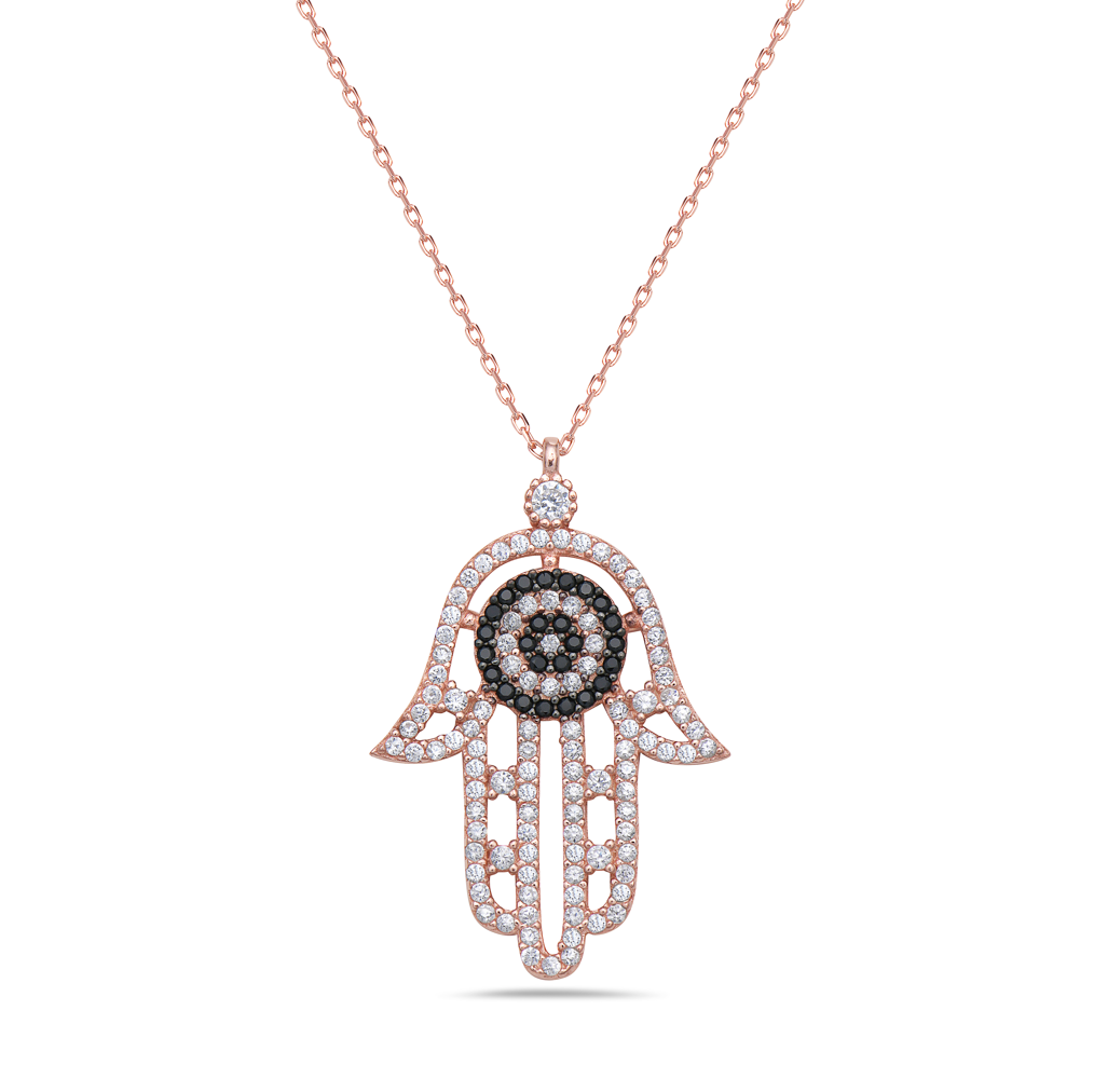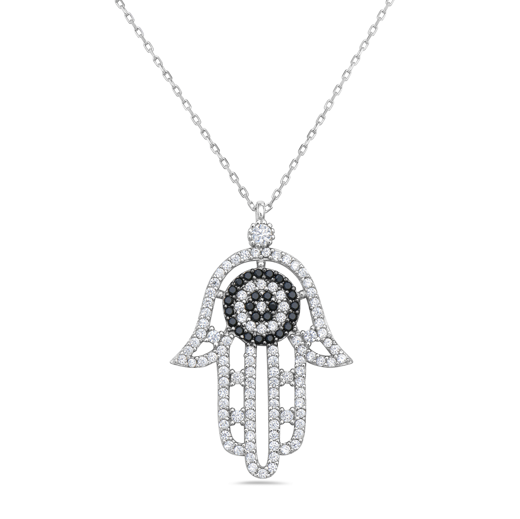 Discover the mystical allure of the Regina Necklace, a captivating blend of protection and elegance. At its heart lies the Hand of God adorned with a mesmerizing evil eye, encrusted with sparkling cubic zirconia. Suspended delicately from a 16-inch chain, with a graceful 1-inch extension for adjustable wear. The pendant measures 1 inch in length and just under half an inch in width, making it a subtle yet striking addition to any jewelry collection. Embrace timeless style and symbolic significance with the Regina Necklace.
